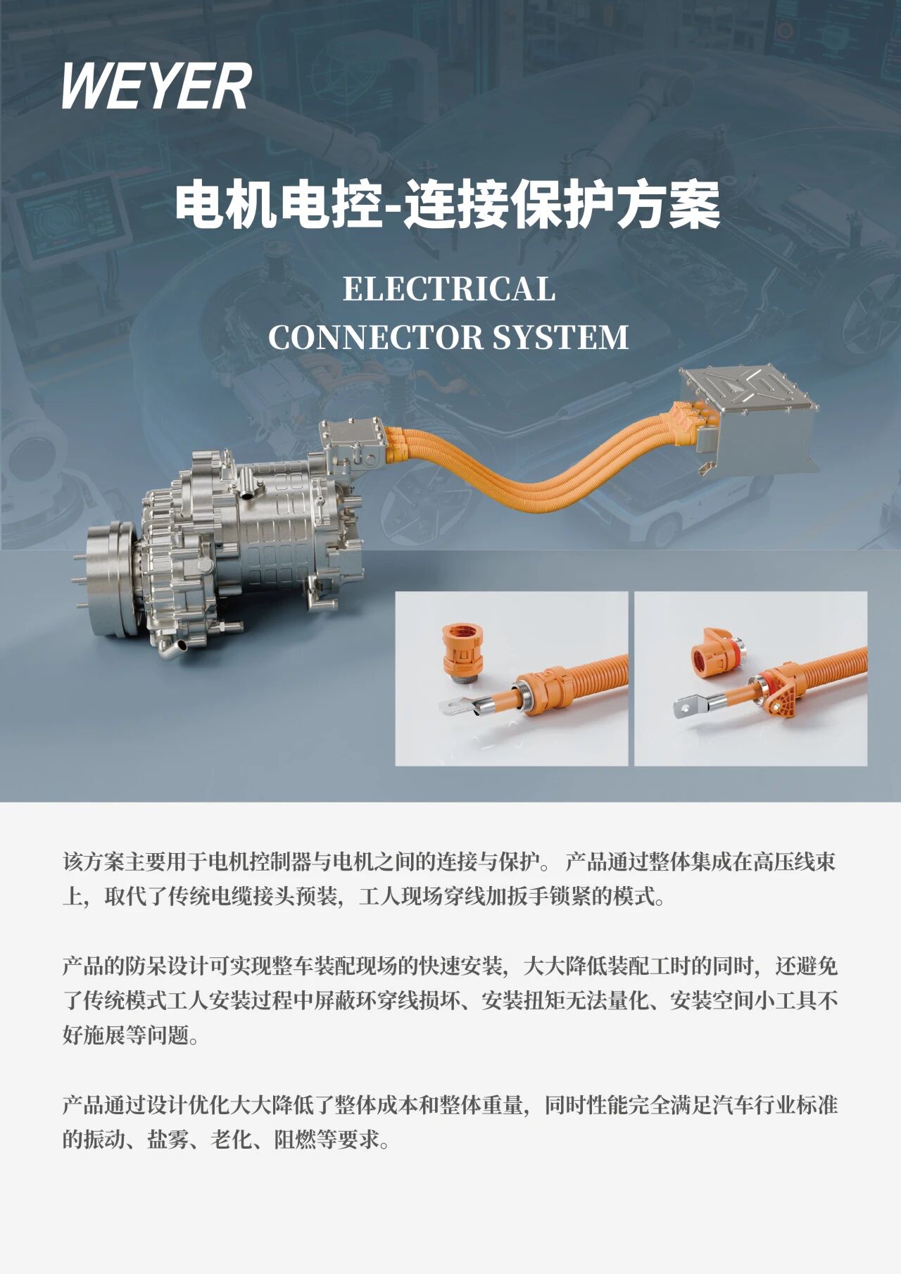 在此次博览会上,文依电气同步重磅推出两款拥有自主知识产权的连接器新品 ——WQC014 L型连接器与WQC015 单芯过孔连接器。两款产品均具备快速安装、屏蔽功能卓越、防护等级达IP68的核心优势;其中 WQC014尾部可固定波纹管,WQC015尾部可选卡波纹管,二者均适配电机、电机控制器等应用场景,为电机领域连接系统的高效化、可靠化提供了创新解决方案,进一步展现了文依电气在电机零部件领域的技术深耕与创新实力。